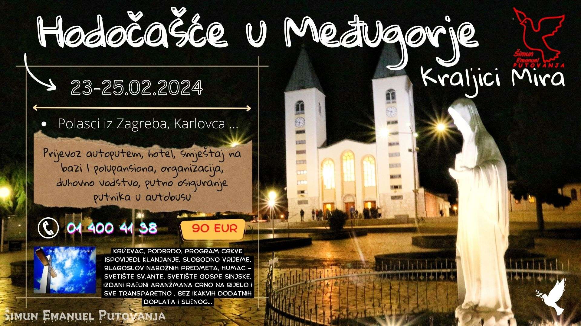 Hodočašće u Međugorje od 23. – 25.02.2024. Svi detalji, program, ukrcaji i cijenu pogledajte na ovome linku: PROGRAM